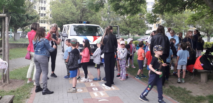 Studenti Střední zdravotní školy, pod vedením svých pedagogů, si pro děti z předškolních tříd připravili několik stanovišť. Děti si mohly prakticky a pomocí hry vyzkoušet poskytování první pomoci. Děti velmi zaujalo také prozkoumávání sanitky a jejího vybavení.